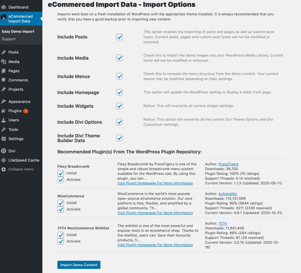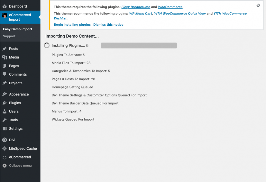 Once the theme has is active, you will see a new menu under dashboard called eCommerced Import
