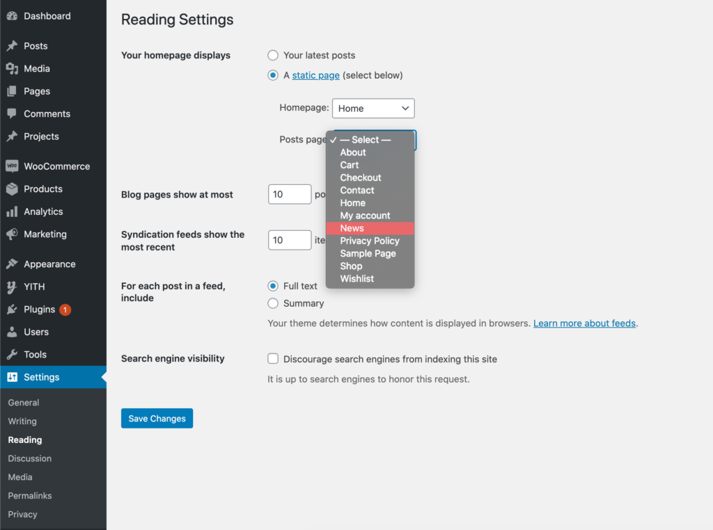 The eCommerced theme comes with a blog page. To setup this page go to Settings -> Reading